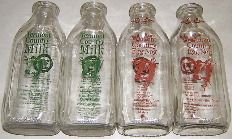 4 Old qt milk bottle Vermont Country egg nog NR lot