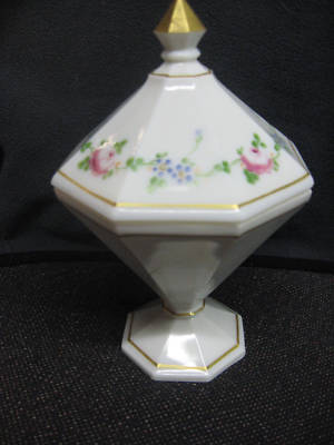 Westmorland Milk Glass 8 Sided Dish Hand Painted w/ Lid