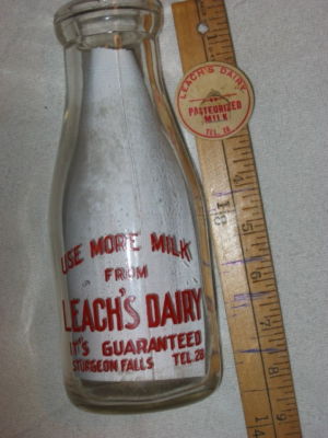 STURGEON FALLS LEACH'S DAIRY 1 PINT GLASS MILK BOTTLE