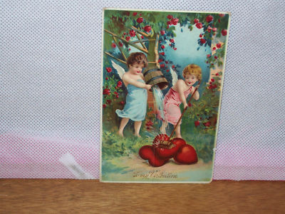 Title (ebay affiliate link): GLOSSY VALENTINE POSTCARD "CUPID'S WASHING AND SCRUBBING HEARTS W/A BROOM" LOOK!