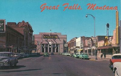 1950-60's POSTCARD - CENTRAL AVENUE, GREAT FALLS, MONTANA MT (50's CARS)!!!!!!!!