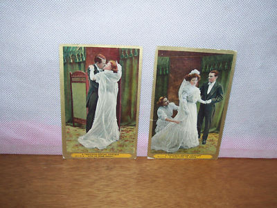 Title (ebay affiliate link): (2) "A TWENTIETH CENTURY COURTSHIP-BRIDE IN LOVELY GOWN & BRIDE KISSING GROOM!!"
