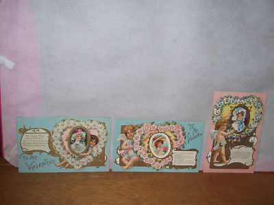 Title (ebay affiliate link): (3) CUPID VALENTINE SERIES "CUPIDS HOLDING PICTURE FRAMES OF LOVELY LADIES" LOOK