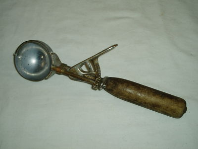 Title (ebay affiliate link): Fine Antique "No. 31" Brass & Wood Ice Cream Scoop