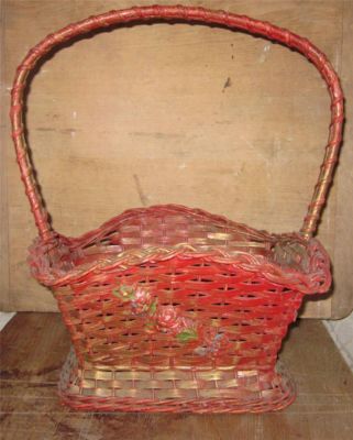 Title (ebay affiliate link): Vintage 1930's Red Cottage Flower Basket With Applied Decoration