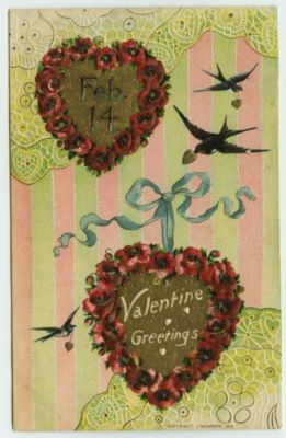 Title (ebay affiliate link): Vintage 1910 Embossed J Baumann Valentine Postcard Birds Floral Hearts