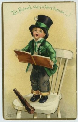 Title (ebay affiliate link): Vintage 1908 Embossed St Patrick Was A Gentleman PC Young Boy Singing on Chair