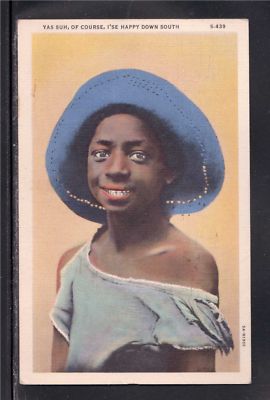 Title (ebay affiliate link): EARLY LINEN BLACK AMERICANA, RAGGED YOUNG LADY, ORIGINAL CARD
