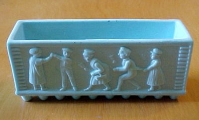 Antique Blue Milk Glass Swansea Master Salt w/People