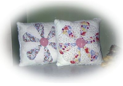 Title (ebay affiliate link): Set of 2 Primitive Vintage Dresden Quilt Square Pillows ~ Antique Chenille Backs