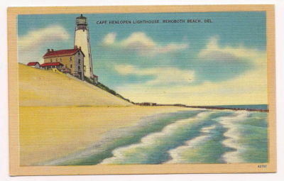 Title (ebay affiliate link): Linen, Cape Henlopen Lighthouse, Rehoboth Beach, DE, 1949