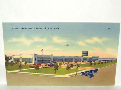 Title (ebay affiliate link): 1943 POSTCARD DETROIT MUNICIPAL AIRPORT DETROIT MI