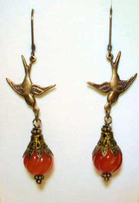 Title (ebay affiliate link): Victorian Art Nouveau Birds & Carved Carnelian Earrings