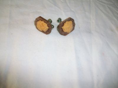 ANTIQUE ART DECO LADIES CLIP ON EARRINGS WOOD CAMEO