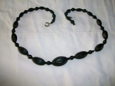 ANTIQUE BLACK BASALT GLASS LADIES NECKLACE