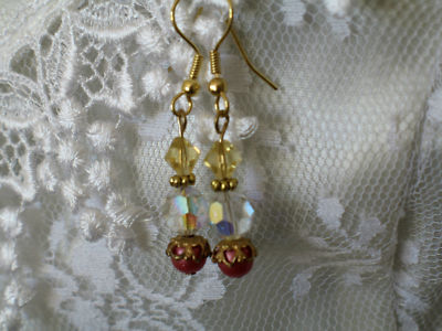 Title (ebay affiliate link): New Antique German Crystal Amber Swarovski Earrings Drop Dangles Pierced Ears