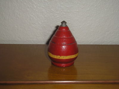 Vintage Wooden Spinning Top metal tip, painted red with yellow stripe