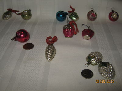 Title (ebay affiliate link): These are 12- vintage tiny miniature glass tree ornaments made in usa.
