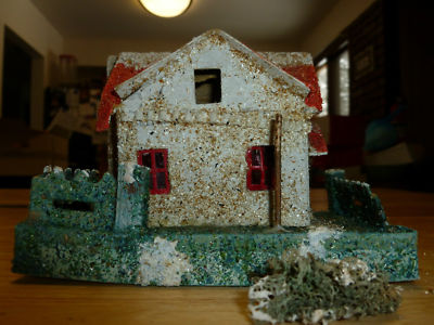 Title (ebay affiliate link): VINTAGE XMAS CARDBOARD MICA COCONUT HOUSE PUTZ VILLAGE BUILDING WHITE