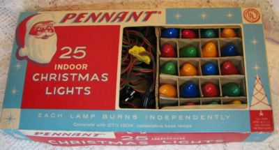 Title (ebay affiliate link): Vintage 1940's Set of 25 Pennant Indoor Christmas Lights in Original Box