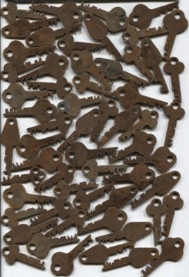 Antique Skeleton Flat Key Box Lot VTG Barrel Lock Keys Furniture Trunk Deco Old