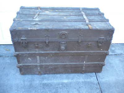 Title (ebay affiliate link): ANTIQUE 1890'S STEAMER TRUNK CHEST WOOD METAL LEATHER AND CANVAS CONSTRUCTION
