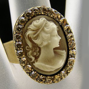 Title (ebay affiliate link): VTG Antique Style Brown Cameo Crystal Rhinestones Ring