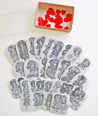Vintage Victorian Doll with Bonus Valentine Heart Paper Stickers circa 60s