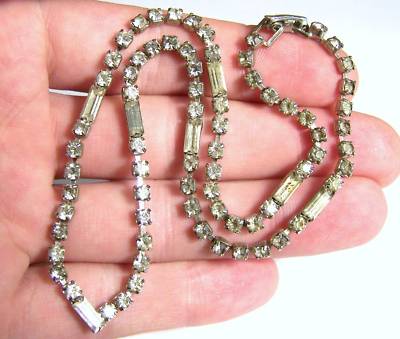 Title (ebay affiliate link): OLD ANTIQUE VINTAGE CLEAR GLASS RHINESTONE NECKLACE 16"