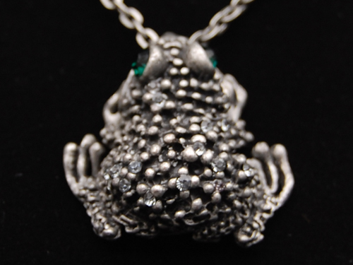 Title (ebay affiliate link): Rhinestone Crystal Frog Antique Silver Pendant Necklace
