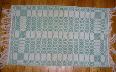 Title (ebay affiliate link): Vintage Green/Ecru Woven Table Runner Fringed Bureau Scarf Reversible Weaving