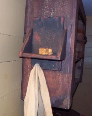 Title (ebay affiliate link): Soap Shelf w/ Wooden Sides and a chunk of lye soap (primitive) you choose color