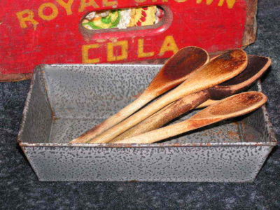 Title (ebay affiliate link): Antique PRIMITIVE Gray GRANITEWARE BREAD PAN~Great Mottling~Crimp Construction