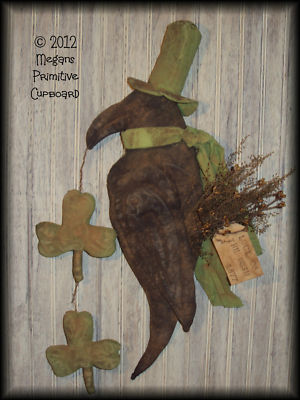 PRIMITIVE ST PATRICK PATRICKS ST PATTY DAY CROW DOOR DOLL WITH SHAMROCKS PRIM