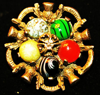 Vintage / Antique Brooch Pewter Art Glass Stone Scottish Celtic signed MIRACLE