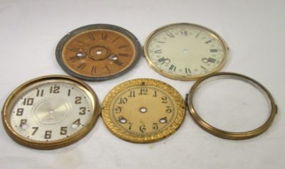 Title (ebay affiliate link): LOT OF 5 ANTIQUE MANTEL KITCHEN CLOCK DIALS DIAL BEZEL PARTS REPAIR