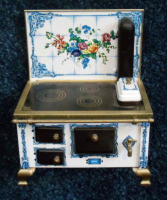 Title (ebay affiliate link): Doll House Miniature Antique Tin Cook Stove Painted Roses Tile W Germany Oven