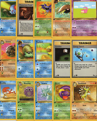 Title (ebay affiliate link): Lot of 15 different common/uncommon POKEMON FOSSIL cards- 1st edition!!