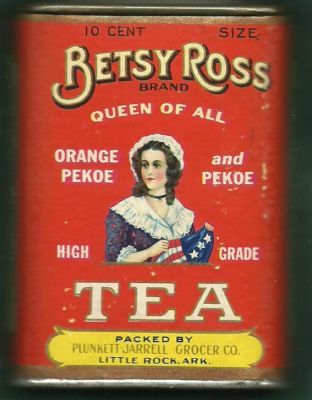 Title (ebay affiliate link): Betsy Ross Tea Tin New-Old-Stock Little Rock, Arkansas 1930-40's