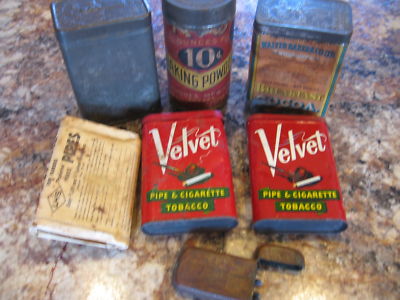 Title (ebay affiliate link): Vintage 1930-1940's Lot of 6 tin containers Tobacco, Cocoa, baking , matches
