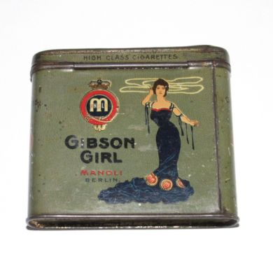 Title (ebay affiliate link): Rare Art Nouveau German Vertical Sized MANOLI Gibson Cigarettes Tin Box