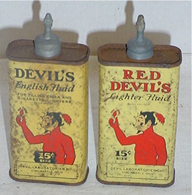 Title (ebay affiliate link): TWO LIGHTER FLUID TINS- RED DEVIL`S + DEVILS ENGLISH FLUID- DEVIL LABORATORIES