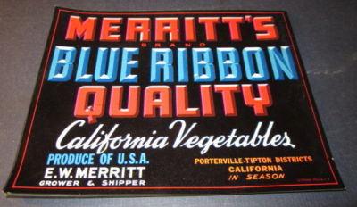 Title (ebay affiliate link): Lot of 50 Old Merritt's BLUE RIBBON Californuia Vegetables Crate LABELS