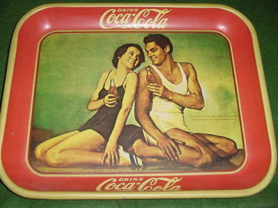 Title (ebay affiliate link): Vintage 1950's Coca Cola Tray, Maureen O'Sullivan and Johnny Weissmuller