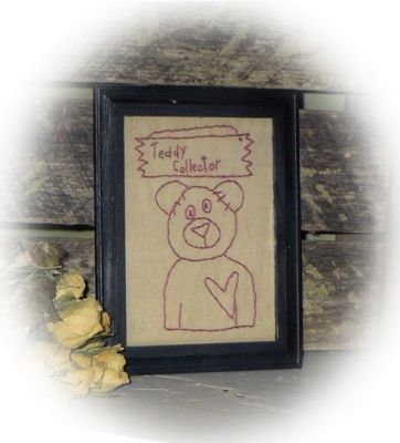 Title (ebay affiliate link): Primitive Redwork Teddy Bear Stitchery Sampler ~ "Teddy Collector"