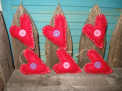 Title (ebay affiliate link): Primitive Valentine Handmade RED Felt Button Heart Ornaments SET 6 Bowl Fillers