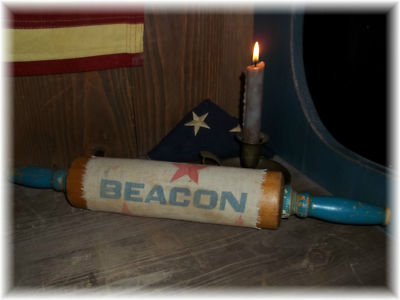 Title (ebay affiliate link): Primitive Wood Blue Rolling Pin Antique Vintage Beacon FeedSack Gathering Candle