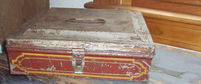 AWESOME ANTIQUE DOCUMENT BOX AWESOME FORM, DETAIL OLD PAINT NR