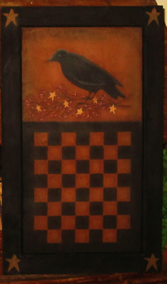 Title (ebay affiliate link): *~*PRIMITIVE*~* HP FOLK ART CROW CHECKERBOARD ~ PIP BERRIES ~ STARS ~ DOOR PANEL