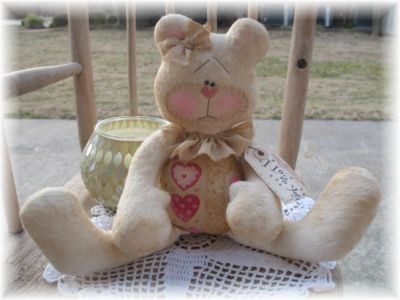 Title (ebay affiliate link): PRIMITIVE VALENTINE BEAR SITTER#1*EASTER*SPRING*LOVE*RAGGEDY*GracieLouOriginals